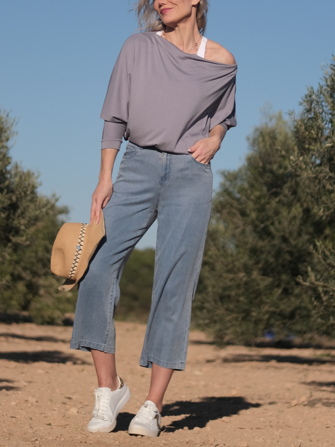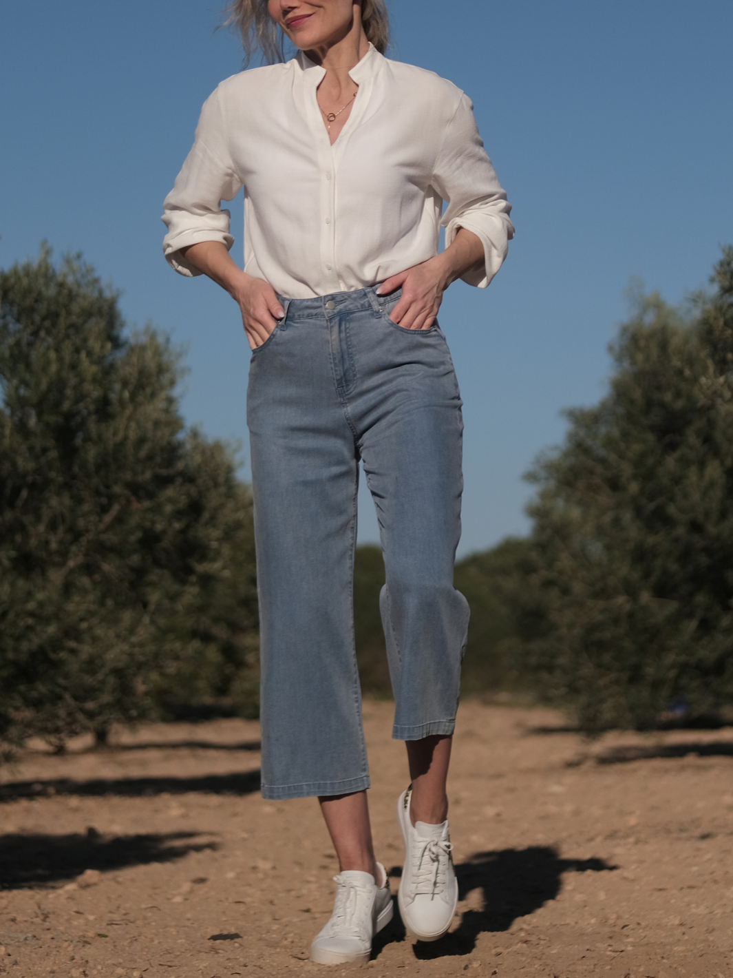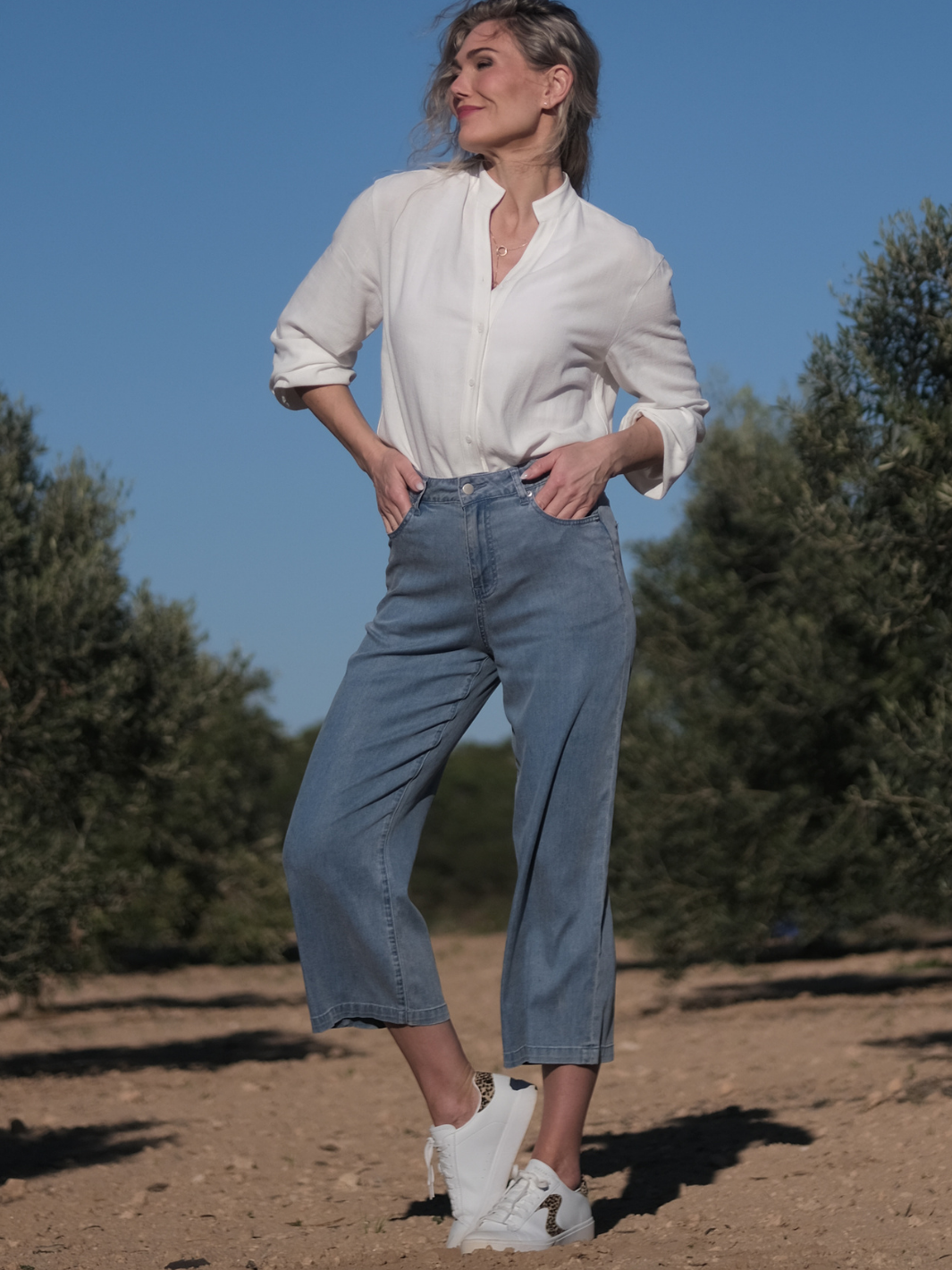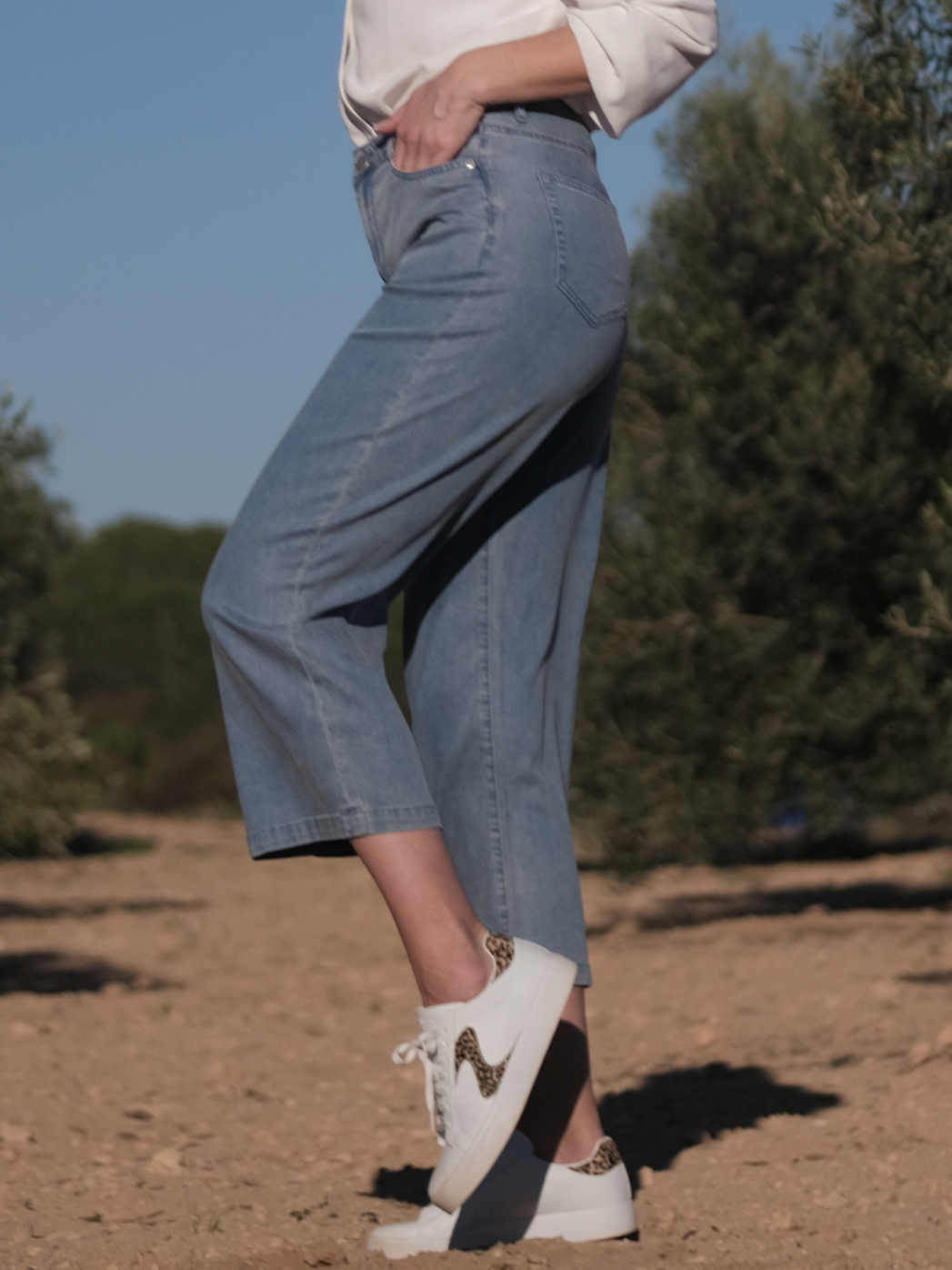 ✔️ Lätt och ventilerande lyocell ✔️ Jeansinspirerad finish i ljus tvätt ✔️ Vida ben i 7/8-längd ✔️ Perfekt blandning av komfort och stil