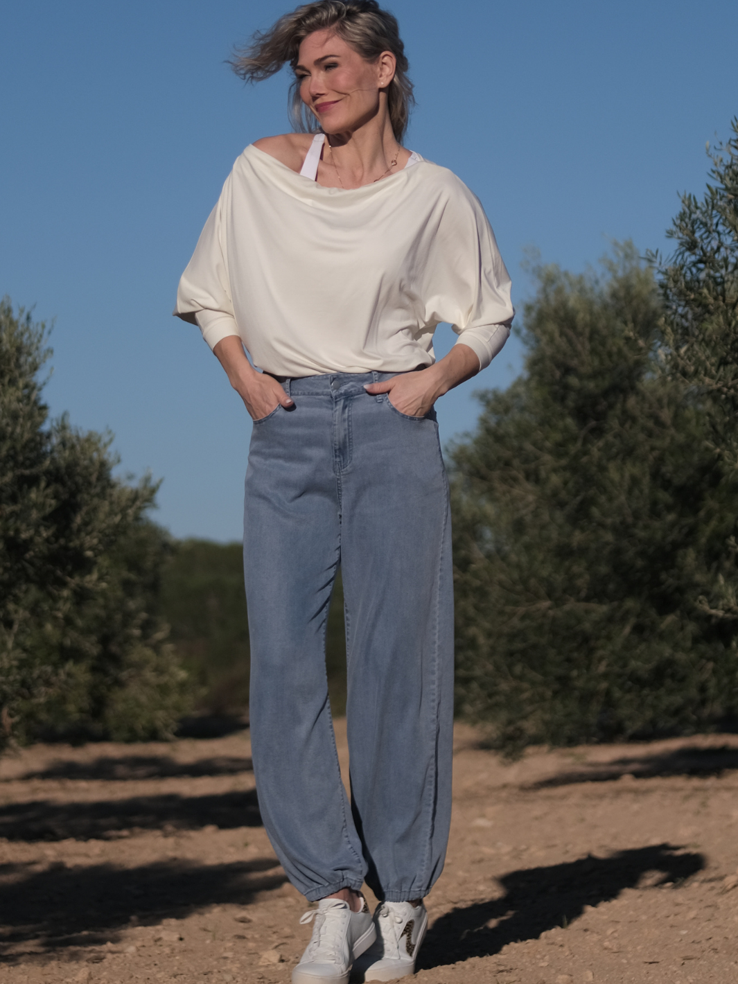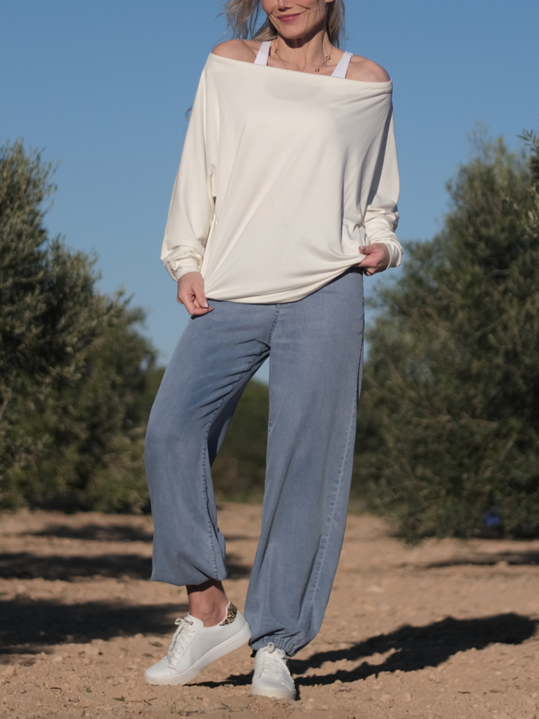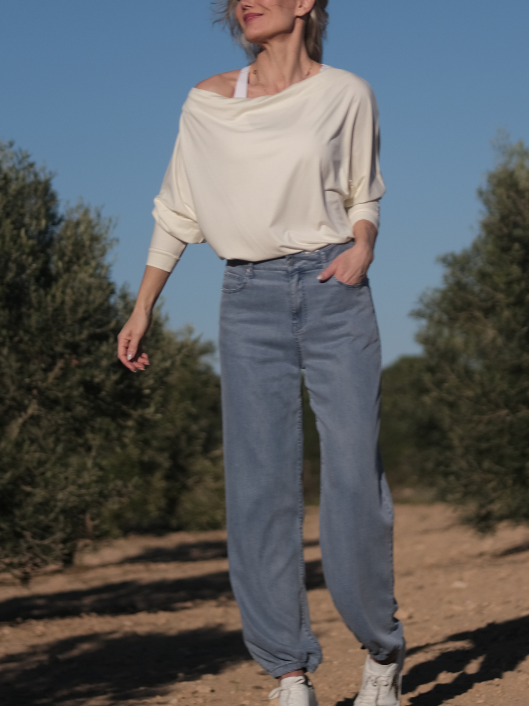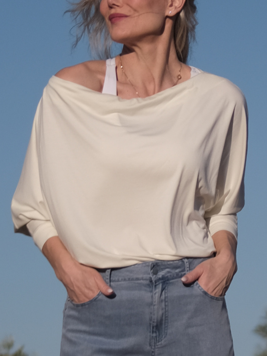 ✔️ Mjuk och ledig modell ✔️ Draperad halsringning med vackert fall ✔️ Något längre – perfekt för lager på lager ✔️ Enkel att styla upp eller ner